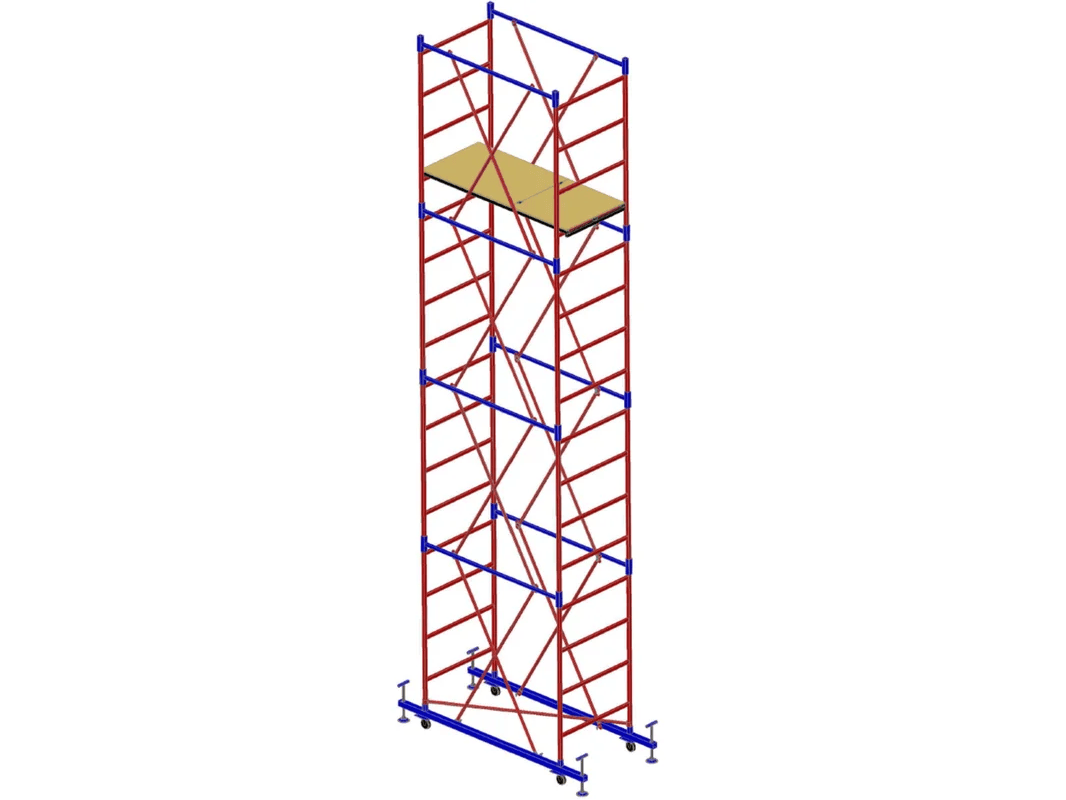 Вышка-тура с площадкой 700х1600 мм и максимальной высотой 4800 мм. Используется на строительных площадках как вспомогательное оборудование при выполнении строительно-монтажных, ремонтных и отделочных работ внутри и снаружи зданий и сооружений. При необходимости переместить всю конструкцию не придется ее разбирать, вышка оснащена специальными колёсами. Модель дополнена ограждением и прочным настилом с очень высокой грузоподъемностью в 250 килограмм. Конструкция выполнена таким образом, что все ступени являются несущими, можно установить настил на все ярусы с шагом в 38 сантиметров.