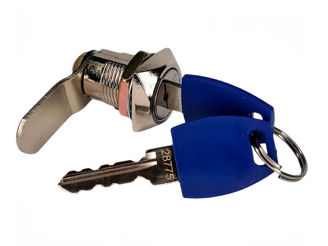В комплект входит сам замок и два ключа. Диаметр барабана составляет 19 мм, угол поворота ключа — 90 градусов. Замок с повышенной секретностью 1:1000 с изогнутым ригелем длинной 45 мм.